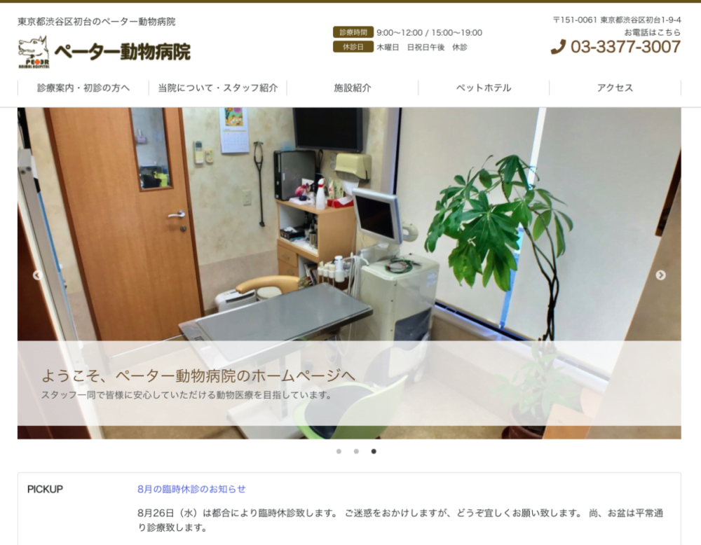 東京都渋谷区初台にあるペーター動物病院様のWEBサイトを制作いたしました。